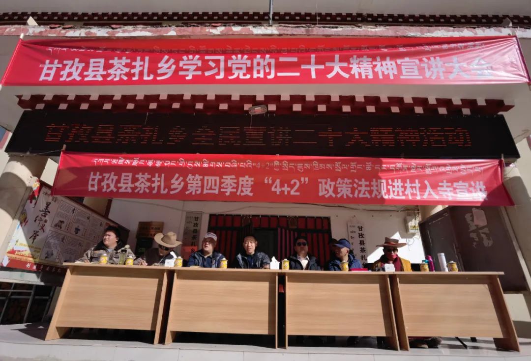 圖為甘孜縣茶扎鄉(xiāng)學(xué)習(xí)黨的二十大精神宣講會 圖片來源:公眾號“微甘孜”