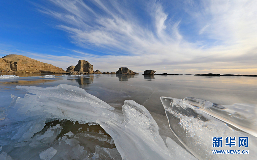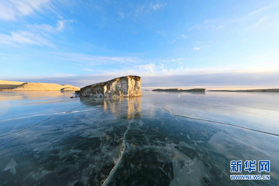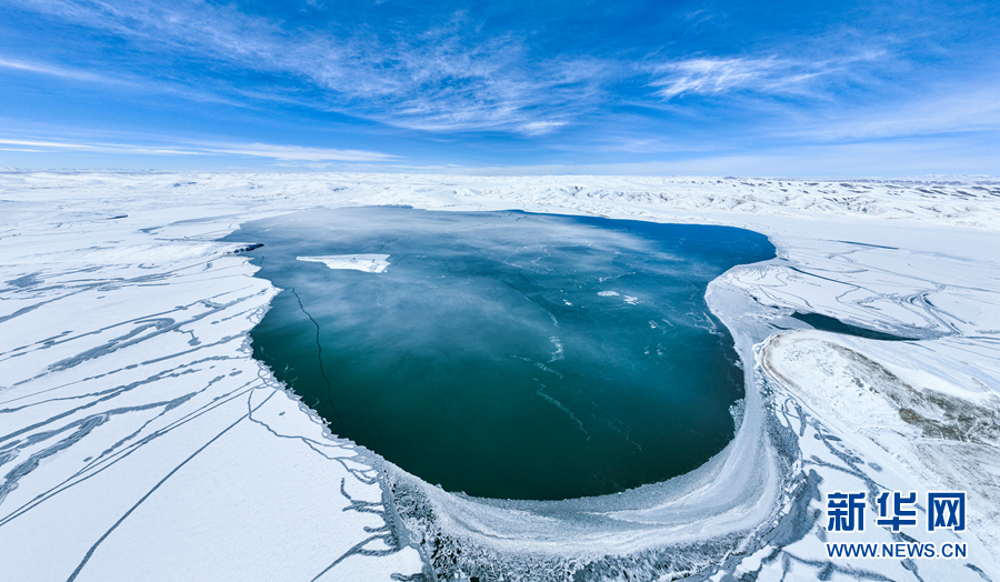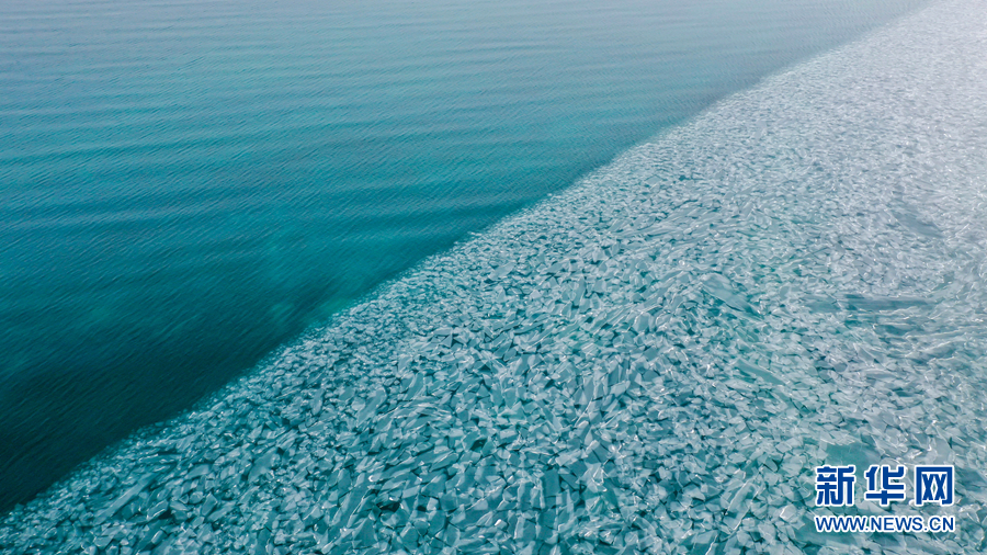 封凍的湖面如同破碎的“玉帶”,形成獨(dú)特的景觀。新華網(wǎng)發(fā)(宋忠勇 攝)