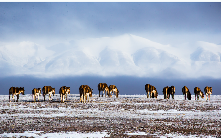 車駛在可可西里無人區(qū)的高原上,越過河和荒野,遠(yuǎn)處就是連綿的雪山。隆冬時(shí)節(jié)的高原被大雪剝奪了顏色,滿目盡是單調(diào)刺眼的白。