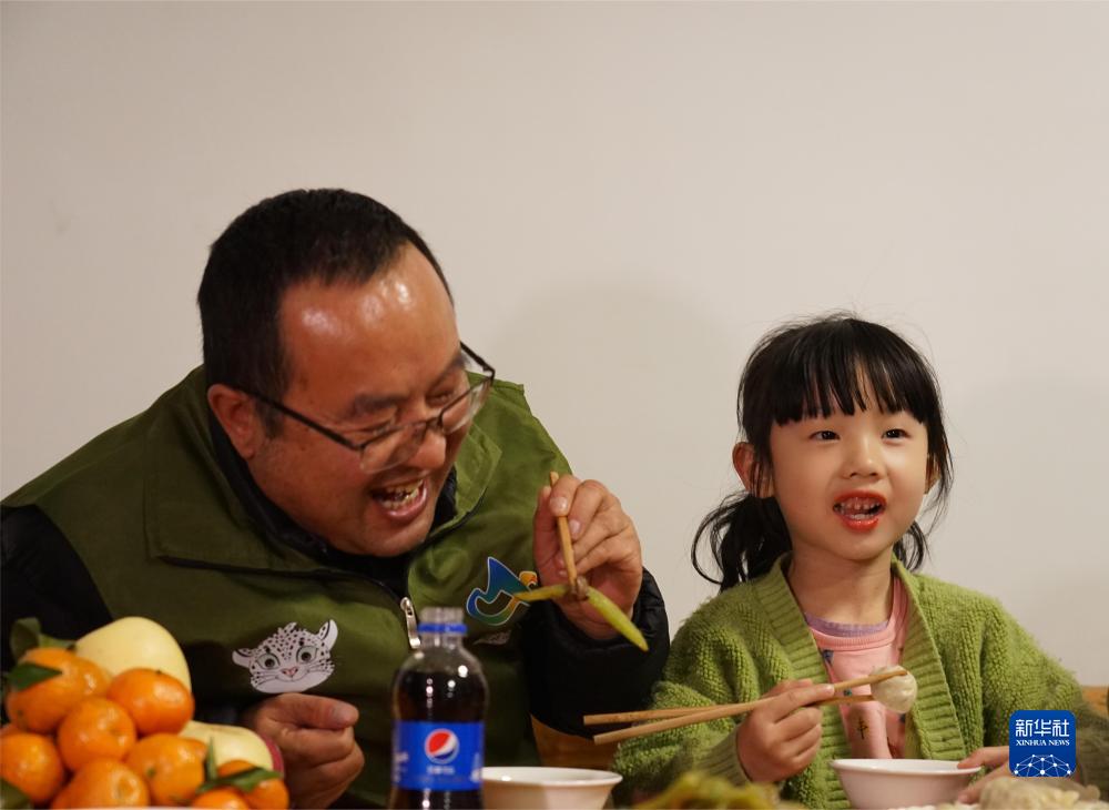 1月14日晚,馬忠華正和女兒一起吃餃子。新華社記者 解統(tǒng)強(qiáng) 攝