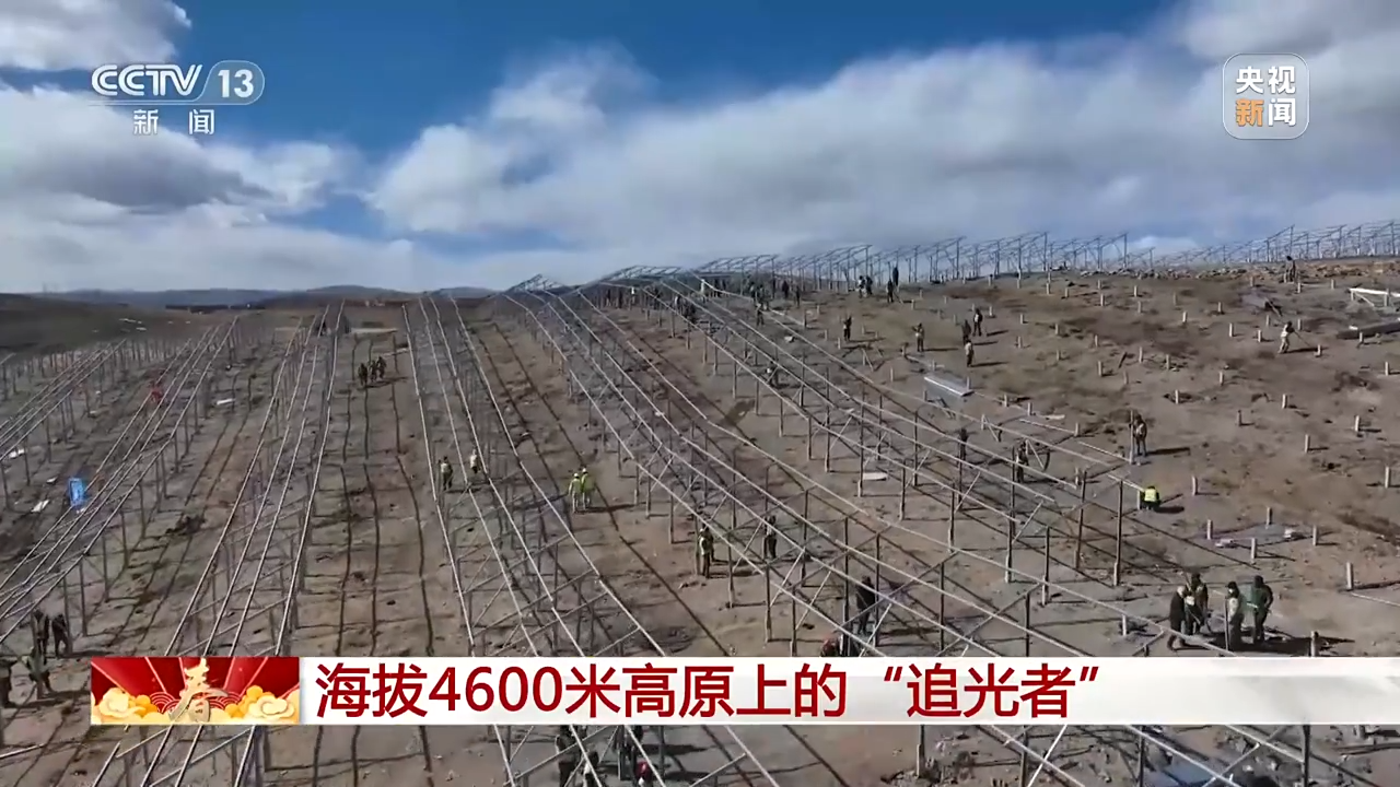 總臺央視記者 古峻嶺:在海拔4600米的柯拉水電光伏互補電站,1000多名建設者正在加緊施工,他們要在春節(jié)期間把53萬根光伏基礎樁全部施工完成。