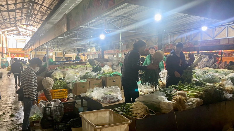 大年初五早上,記者來到香格里拉市向陽農(nóng)貿(mào)市場看到市場內(nèi)攤位已經(jīng)在陸續(xù)開張營業(yè)。早上八點,已經(jīng)有市民前來采購新鮮蔬菜,直到下午三點多市場內(nèi)依舊有很多市民進(jìn)出采購。