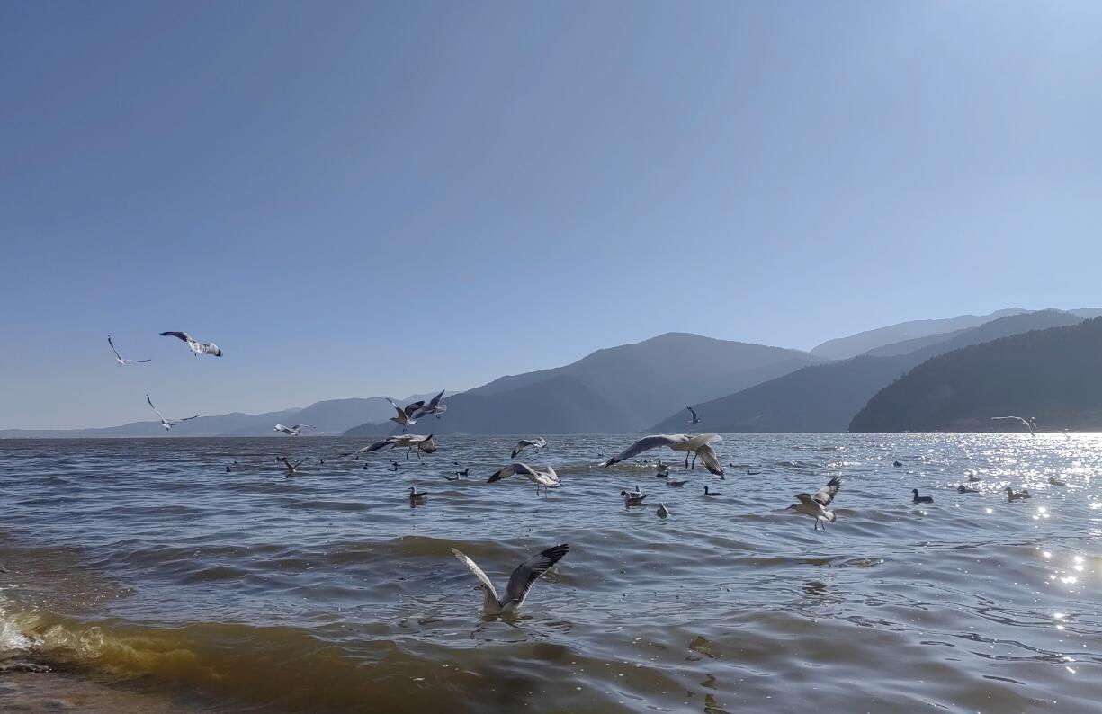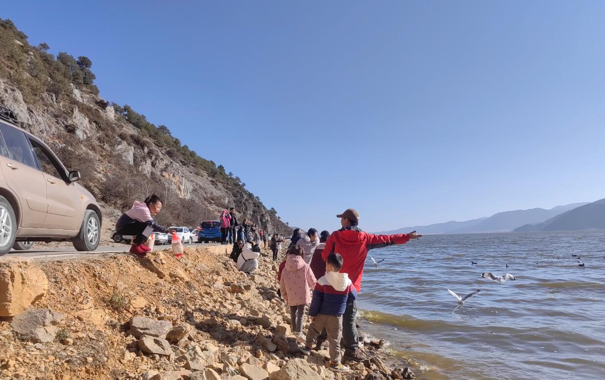 1月28日,記者在納帕海自然保護(hù)區(qū)看到成群的海鷗在這里盤旋飛舞,不少游客手托面包進(jìn)行投喂,一幅幅人與自然和諧共生的美好畫(huà)卷徐徐鋪開(kāi)。“第一次來(lái)香格里拉,看到不少游客在這里投喂海鷗,我也買一袋來(lái)試試。”游客王鑒詳說(shuō)。