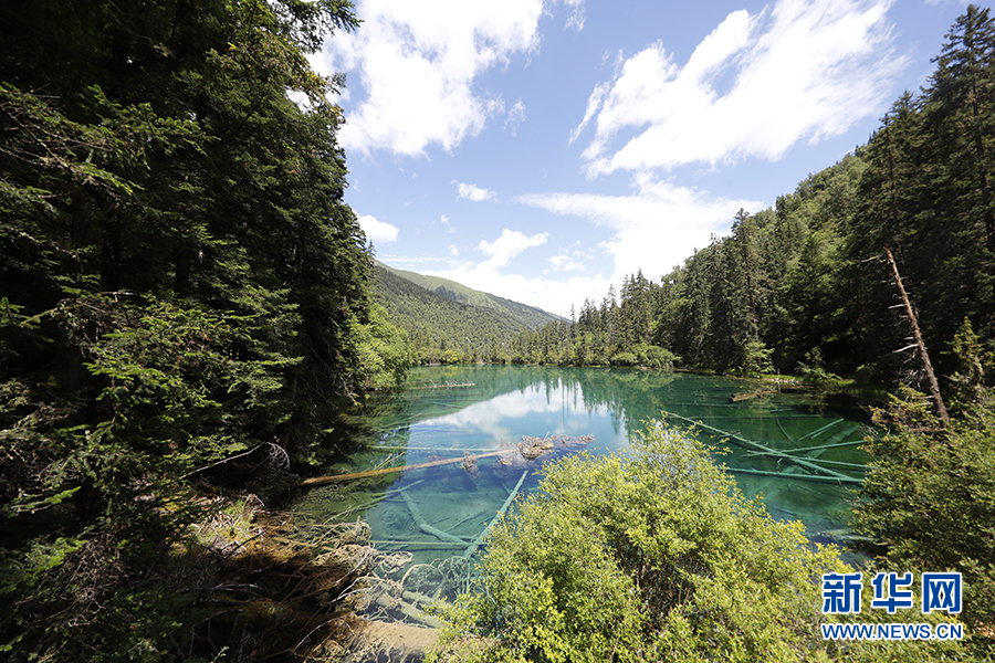世界自然遺產(chǎn)地九寨溝冬季的高原群海在陽光下色彩格外湛藍(lán)。肖維陽 攝