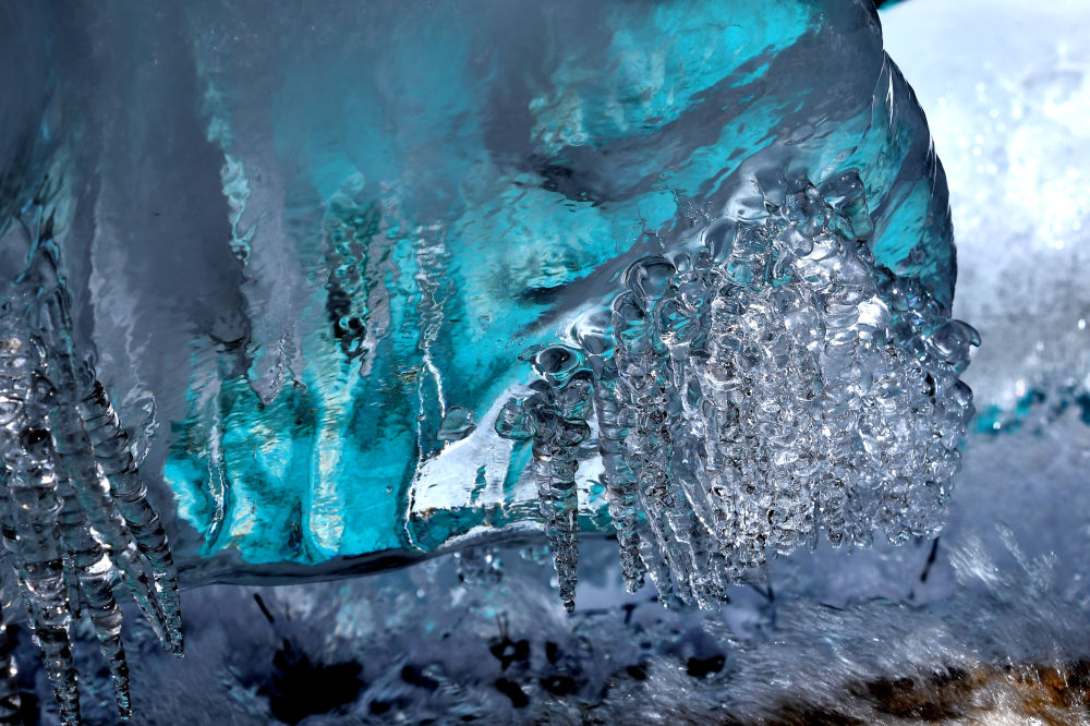“潔凈的空氣和水是形成藍(lán)冰的基礎(chǔ)條件,隨著氣溫持續(xù)降低,冰層厚度越厚,藍(lán)冰也會(huì)格外明顯。”肖維陽說。