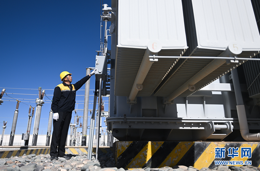 2月5日,在青藏集團(tuán)有限公司西寧供電段格爾木南變電所,王永忠在巡檢供電設(shè)備。新華社記者 張龍 攝