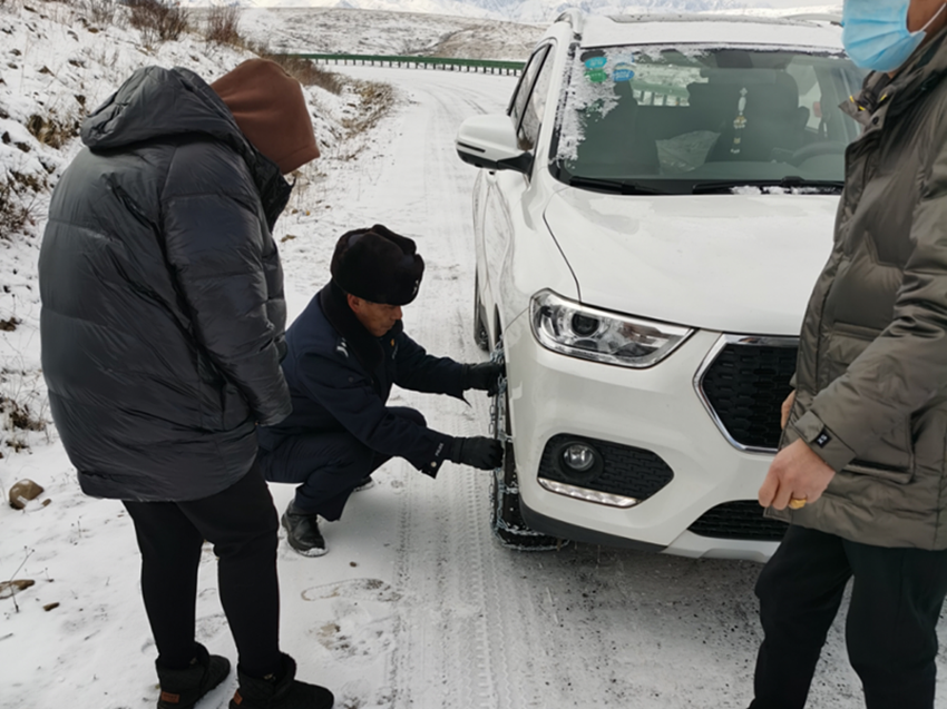 一西多吉幫助過(guò)路車(chē)輛掛鏈條