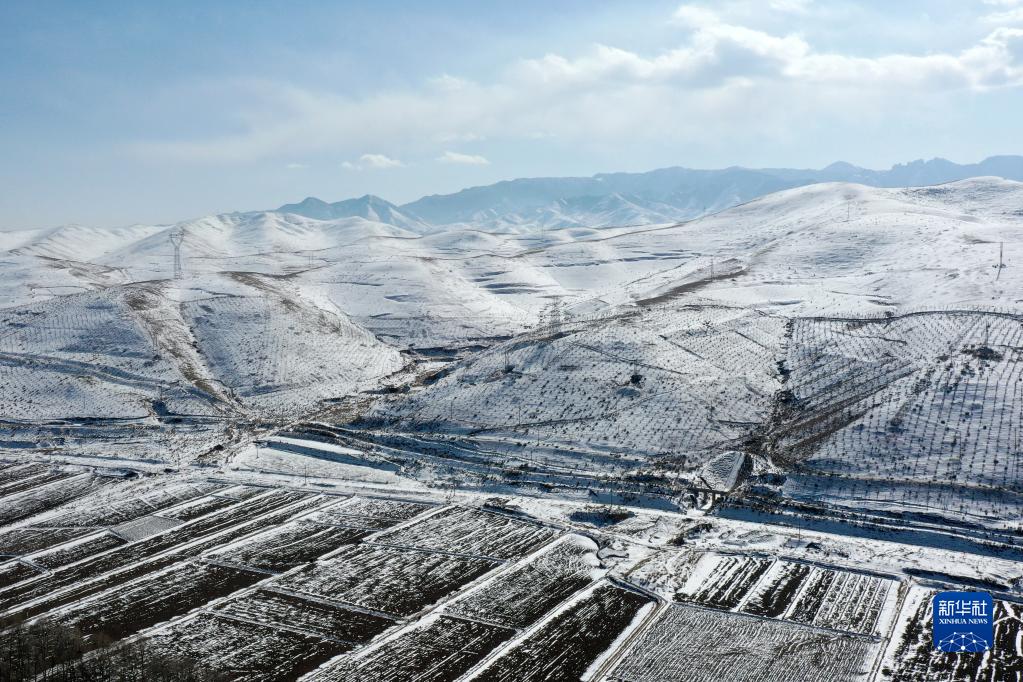 2月14日拍攝的烏鞘嶺及周邊雪景(無(wú)人機(jī)照片)。新華社記者 范培珅 攝