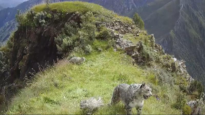 青海玉樹紅外相機(jī)捕捉到三只雪豹“同框”