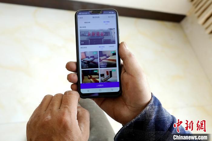 圖為村民展示自家民宿在旅游平臺(tái)等待訂單。馬銘言 攝