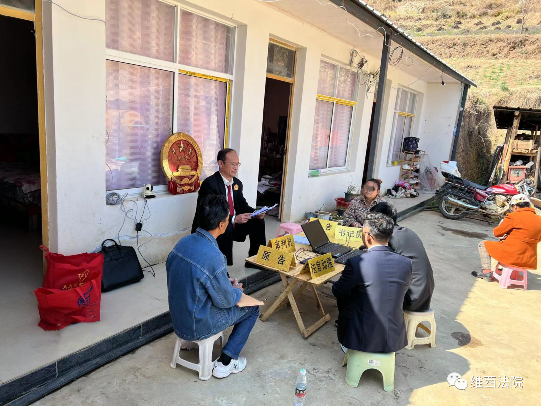2023年3月14日,為減輕當(dāng)事人訴累,提高辦案質(zhì)效,立案庭干警一行4人到維西縣保和鎮(zhèn)蘭永村的當(dāng)事人家中進(jìn)行巡回開庭。[詳細(xì)] -