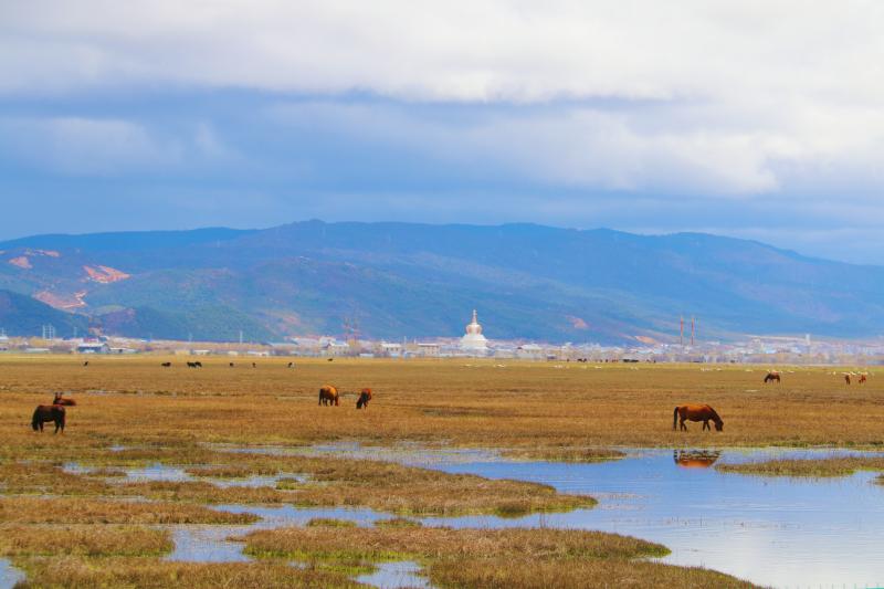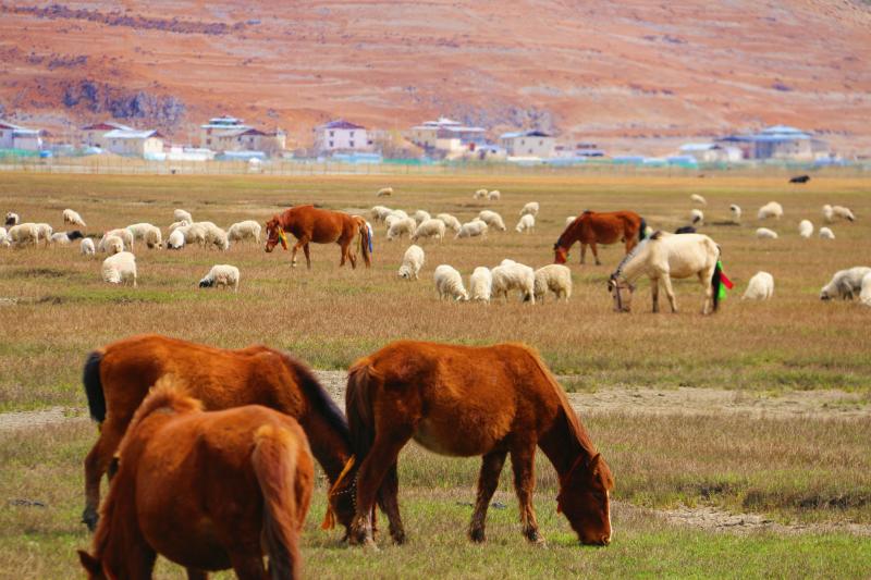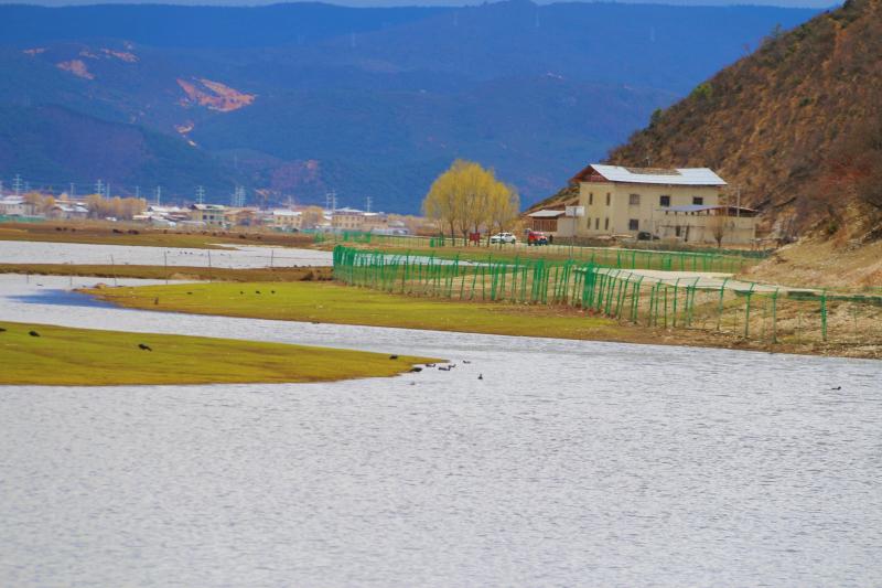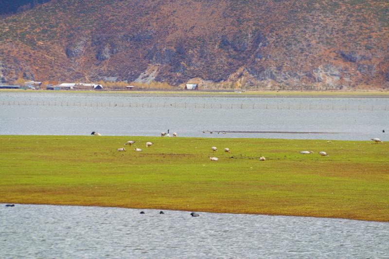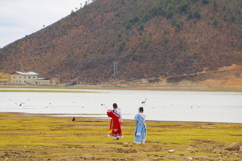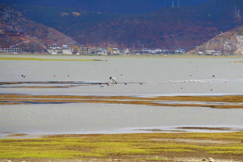 此時(shí)的納帕海,黑頸鶴還未離去,草色漸青,水草抽芽,鳥兒和牛羊悠閑覓食,這就是高原上的春天!