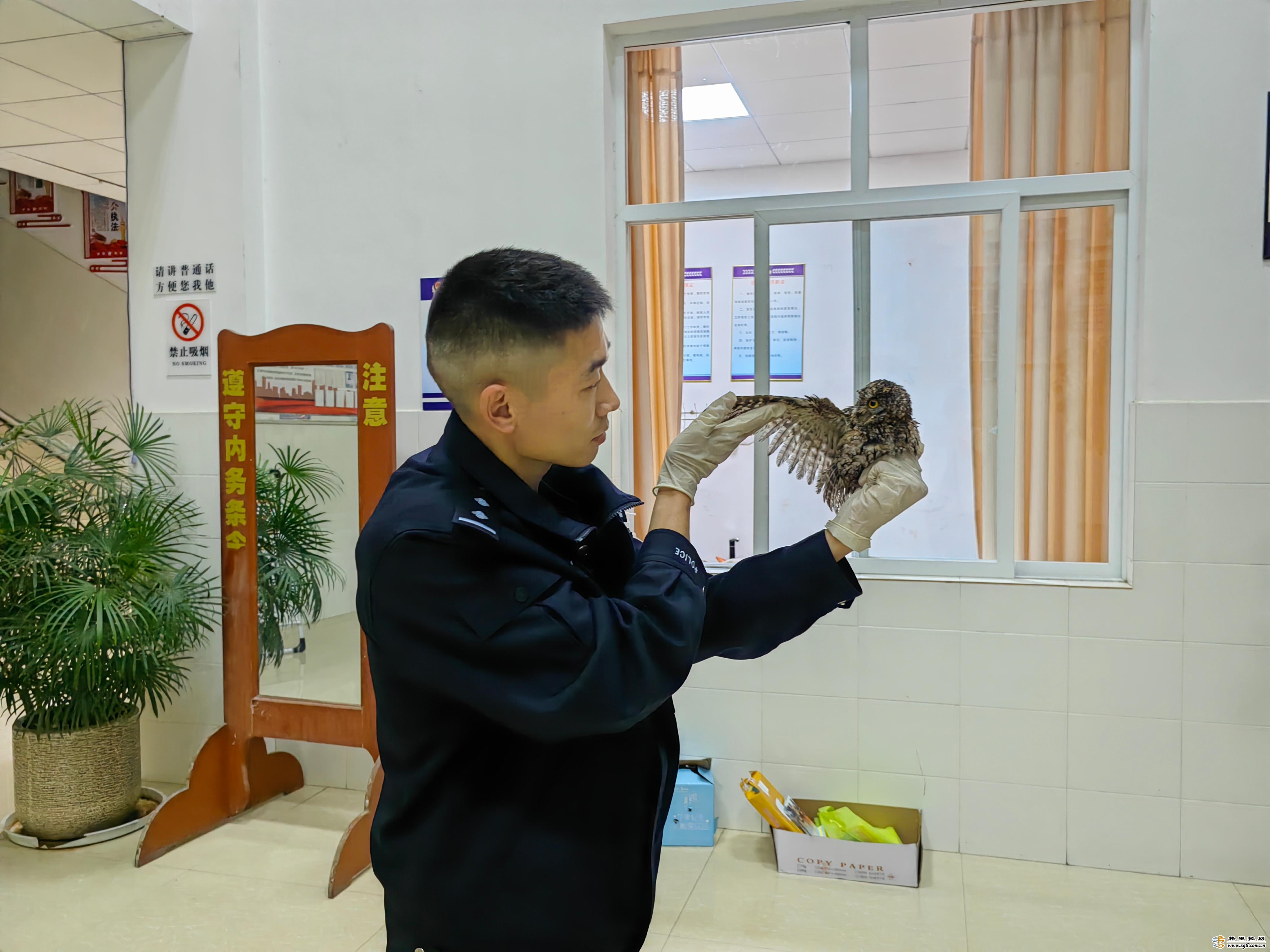 近日,維西縣公安局森警大隊民警接到群眾報警稱:“在興維大道錦盛小區(qū)發(fā)現(xiàn)一只受傷的貓頭鷹,請求森警大隊民警前往救助”。民警趕到現(xiàn)場時,熱心群眾已經將貓頭鷹放在一個紙盒里,該貓頭鷹全長約20厘米,身上部分羽毛是濕的。