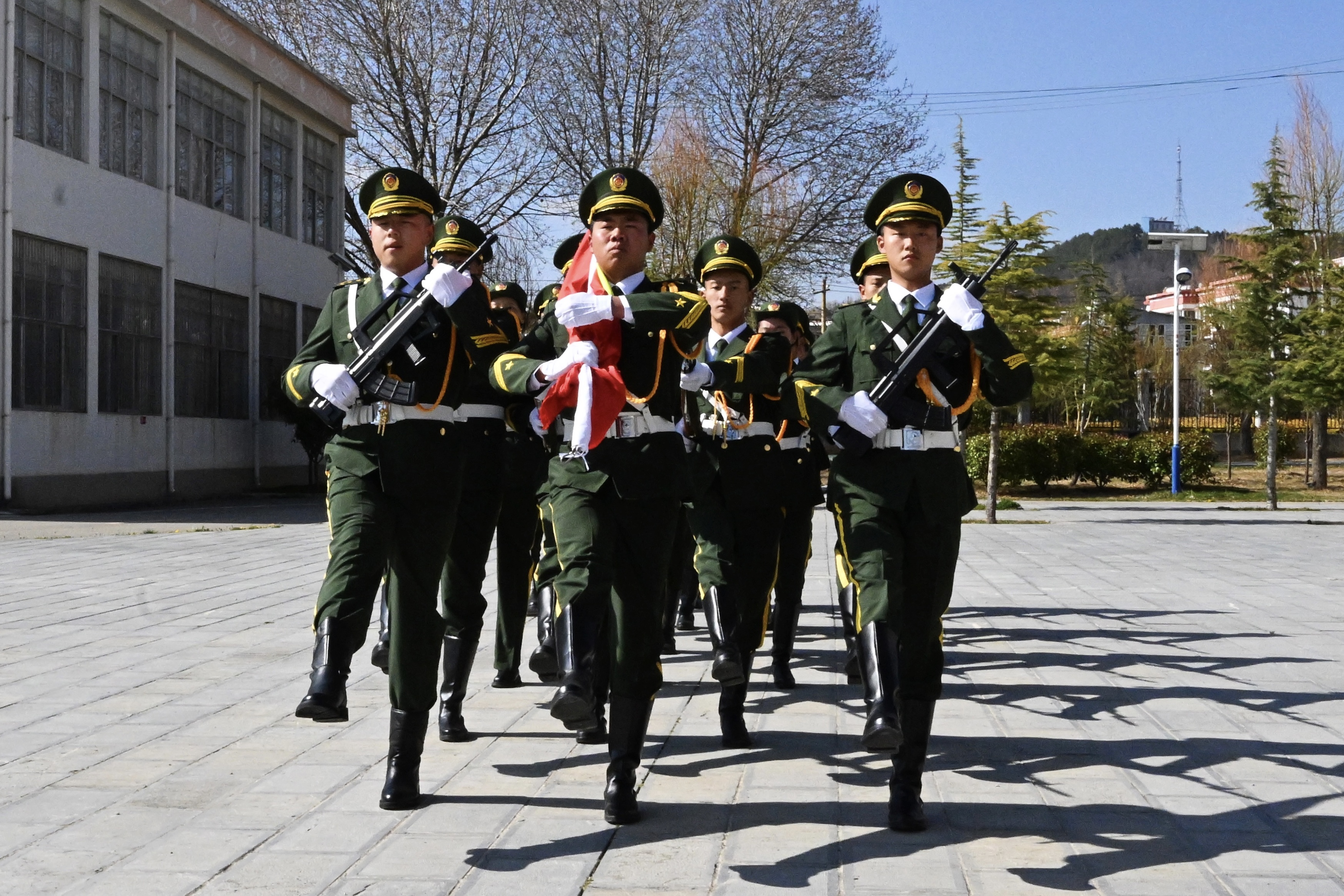 據(jù)悉,該校組建一支紀(jì)律嚴(yán)明、嚴(yán)肅認(rèn)真的國(guó)旗護(hù)衛(wèi)隊(duì)是學(xué)校推進(jìn)國(guó)防教育和軍魂教育的重要載體,也是弘揚(yáng)愛(ài)國(guó)主義精神、加強(qiáng)愛(ài)國(guó)主義教育的重要形式。