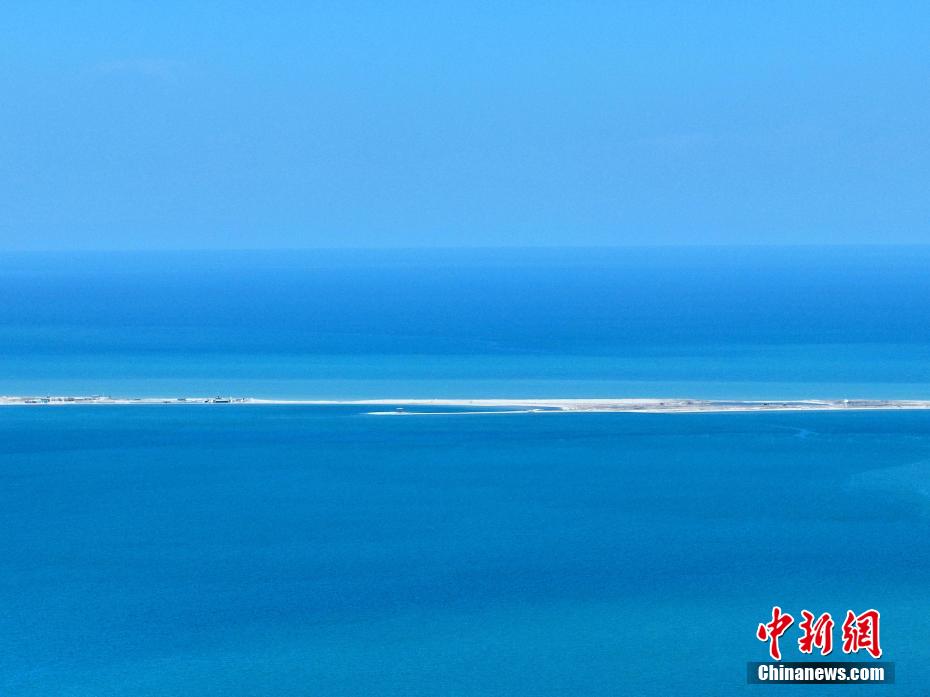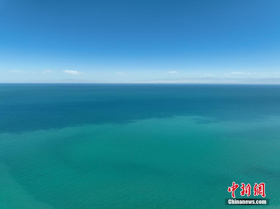 暮春時(shí)節(jié),素有“高原藍(lán)寶石”之稱的青海湖天高云淡、波光粼粼。遠(yuǎn)處的山與碧藍(lán)的湖水交相輝映,宛如油畫,美不勝收。圖為航拍青海湖水天一色。