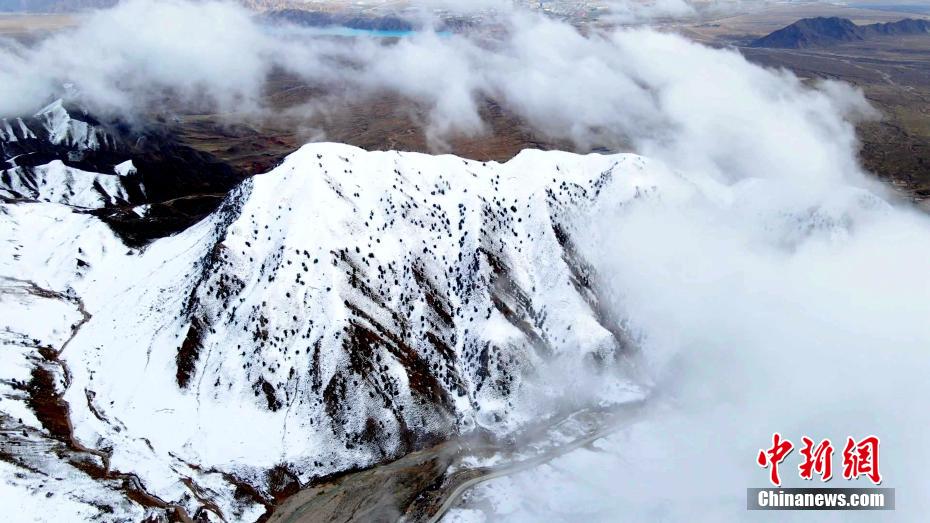 春日五月,攝影愛好者在柴達木盆地的青海省海西蒙古族藏族自治州,航拍州府德令哈市以北的柏樹山。畫面中,春日雪后的柏樹山頂云霧繚繞、云海翻騰,宛若仙境。柏樹山最高峰海拔4000多米,山勢峻峭偉岸。柏樹山西靠巴音河,東臨國道315線,是德令哈市的天然屏障,它像一位壯士守護著德令哈這顆“高原明珠”。登上柏樹山頂峰,鳥瞰山下,德令哈市容和萬般風(fēng)光盡收眼底。