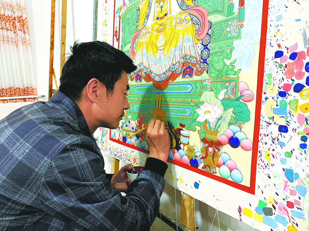 圖為仁俊畫院內的唐卡。張?zhí)砀?攝