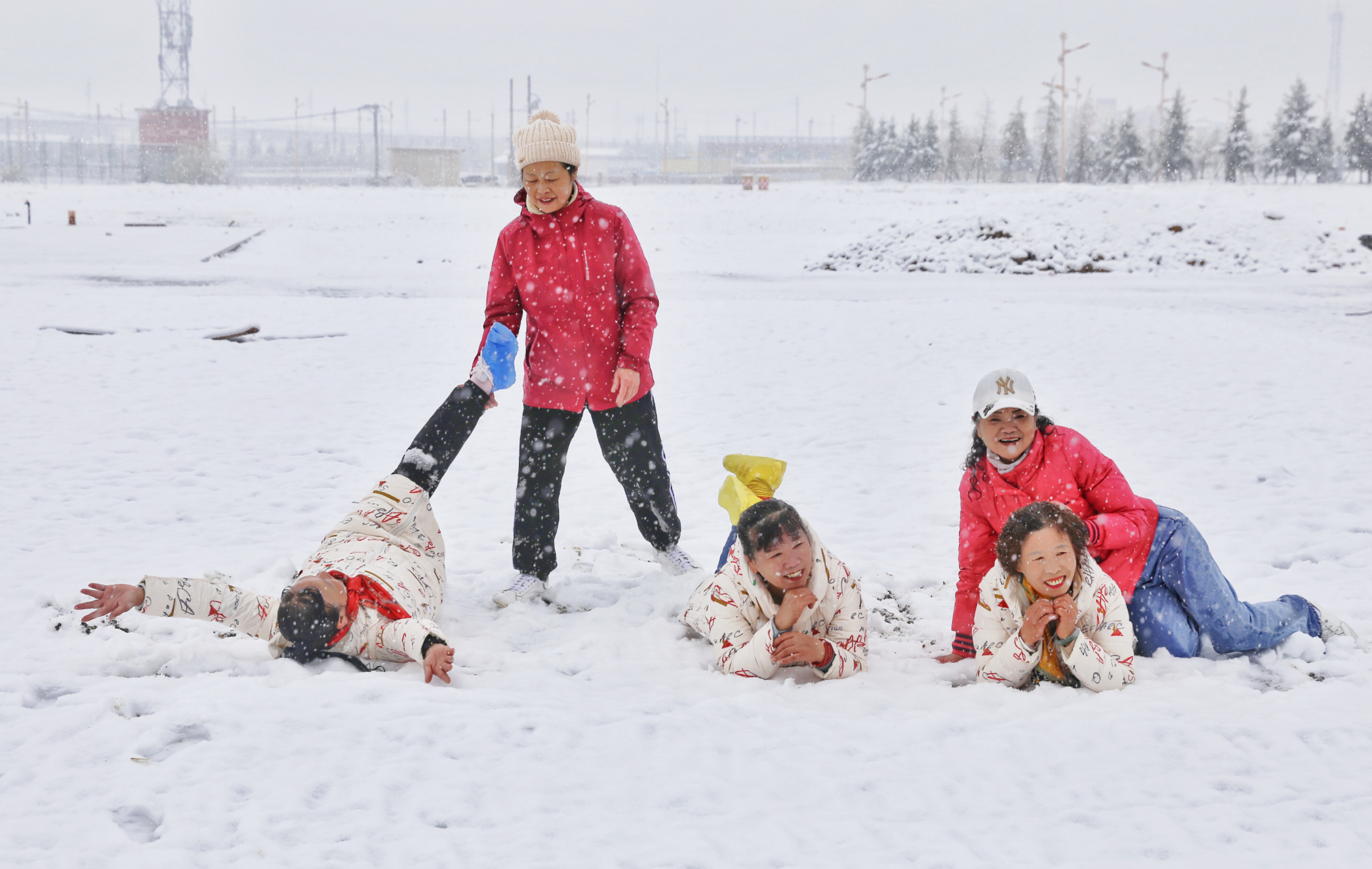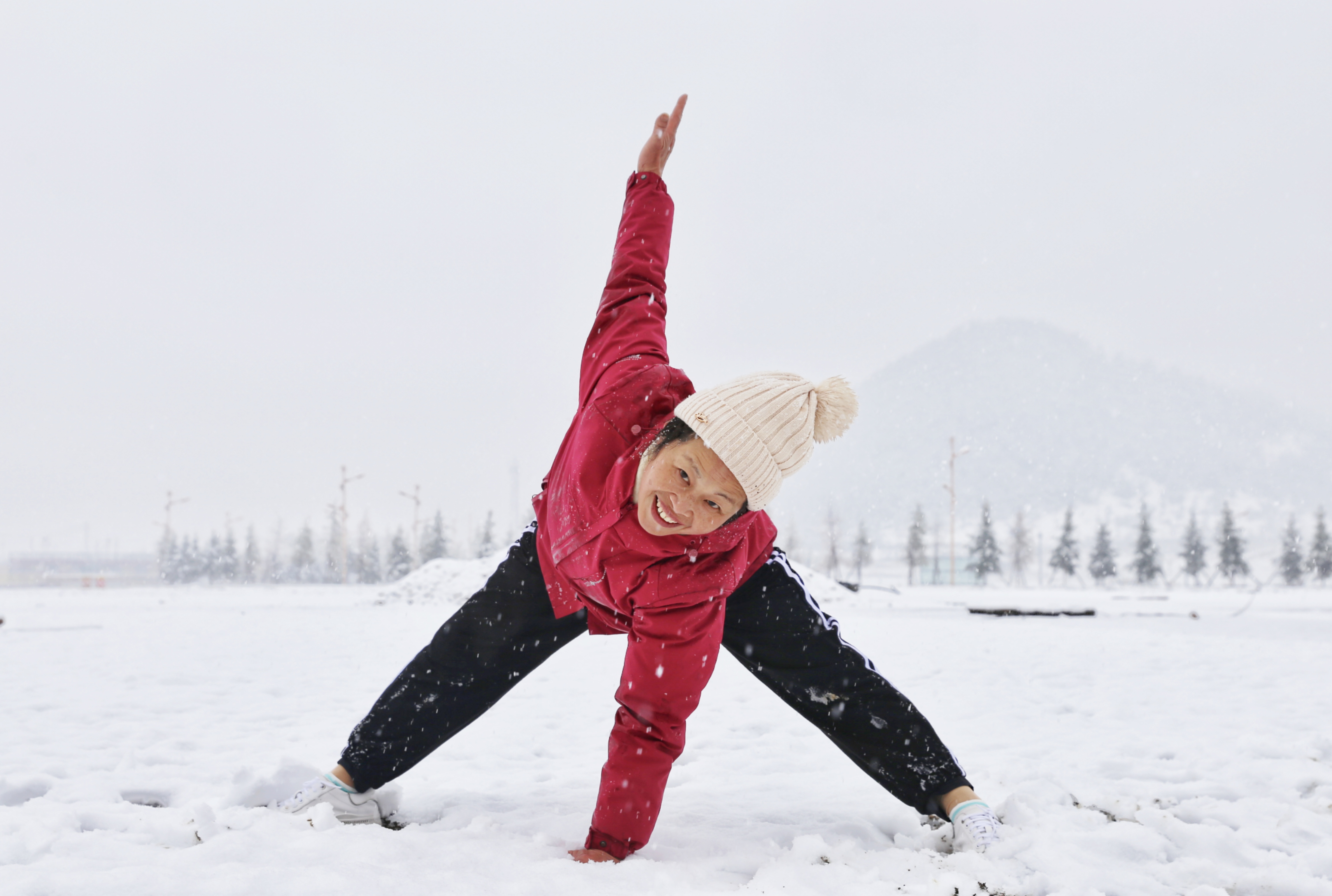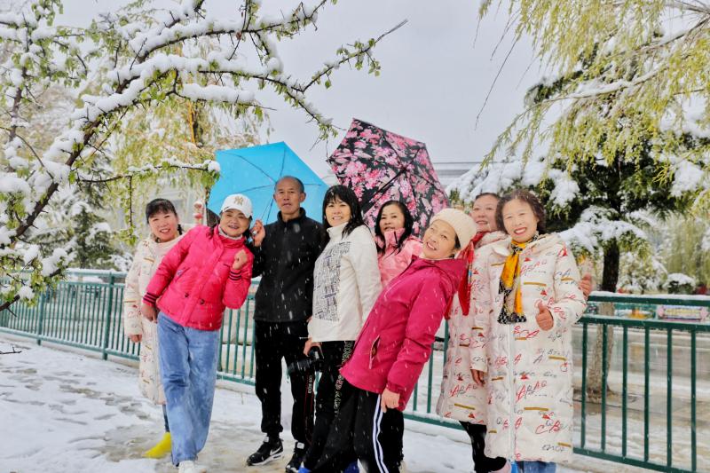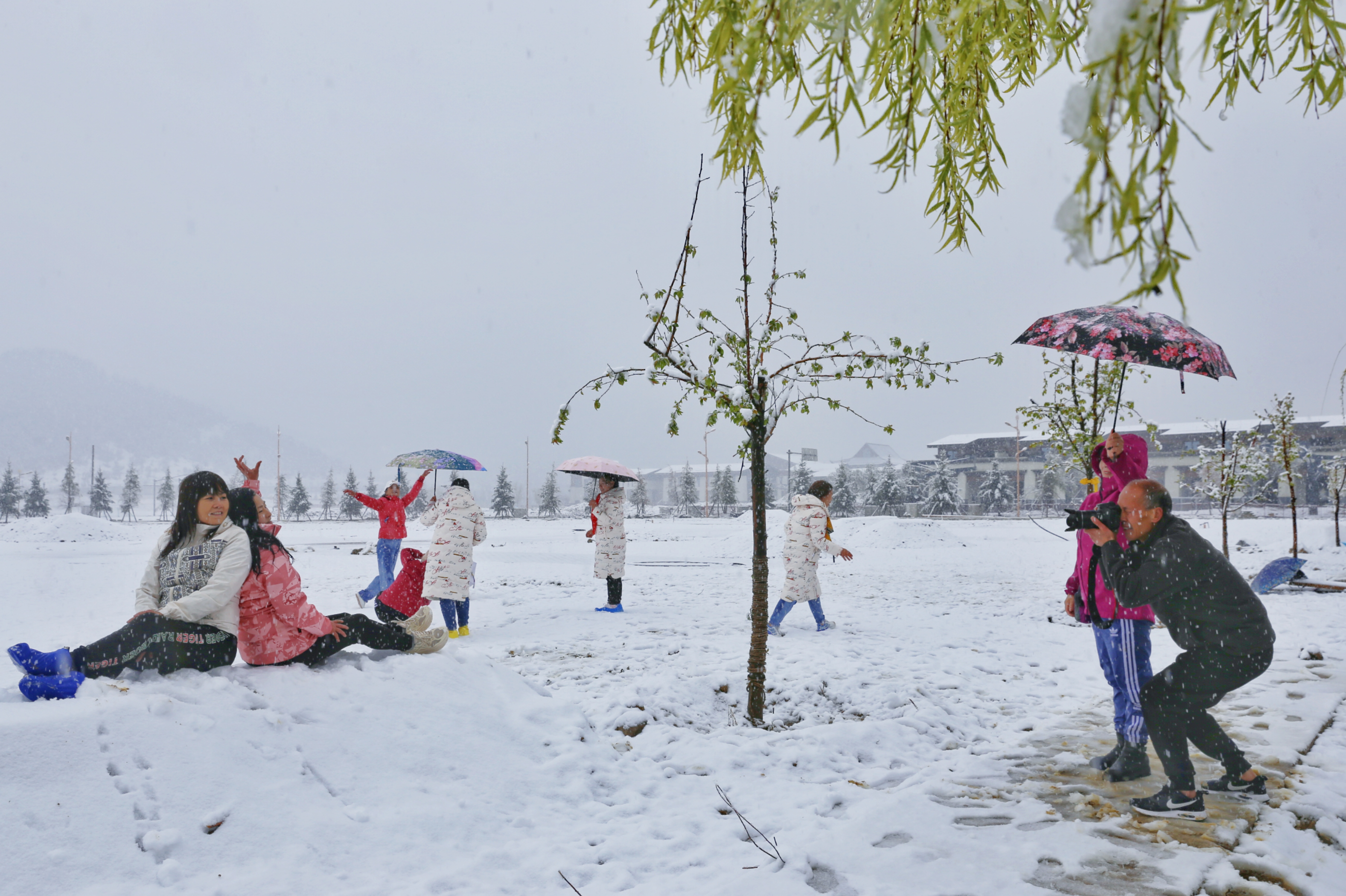 5月15日,香格里拉迎來(lái)一場(chǎng)夏雪,大雪紛飛的雪地中一群來(lái)自貴州的“嬢嬢團(tuán)”正興奮的玩雪、拍照,“太有意思了,五月也能玩到雪,很難得?!苯衲?5歲的劉嬢嬢告訴記者,她們?cè)谙愀窭锢瓮嫒奶炝?,今天?zhǔn)備返程,出城路上被雪景吸引便索性再留出半天時(shí)間看雪。雪地中的嬢嬢們精氣十足,捏雪球、劈腿、下腰、打滾……大家紛紛擺出自己最拿手的pose拍照記錄下這令人驚喜的美景。