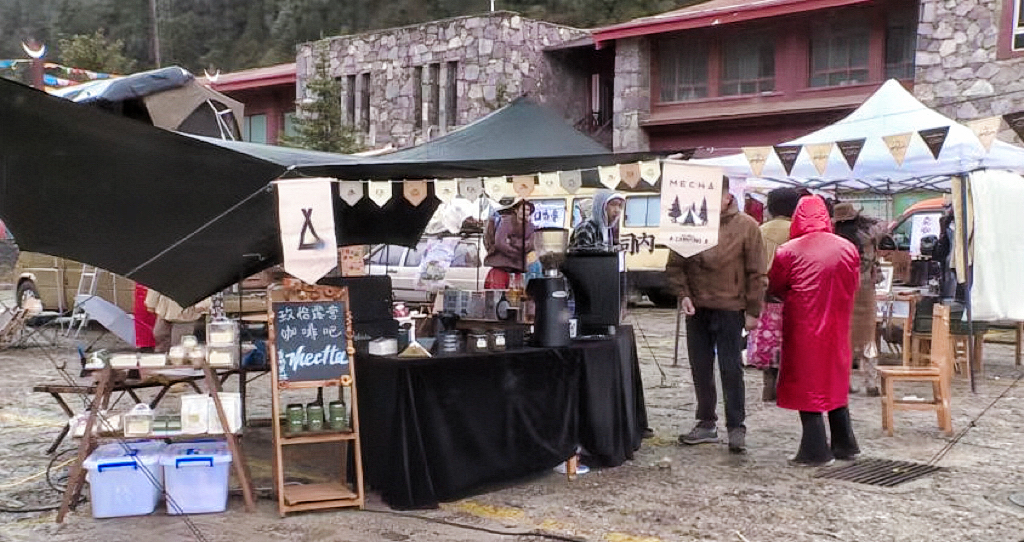 5月14日,普達(dá)措國家森林公園內(nèi),流動(dòng)咖啡車、本土手工藝、藏式美食、在地風(fēng)物于一體的露營市集吸引游客紛紛駐足,看工藝品、喝咖啡、吃美食······游客們?cè)谙愀窭锢霹N季移動(dòng)咖啡節(jié)活動(dòng)現(xiàn)場(chǎng)體驗(yàn)咖啡、氣味、音樂、高原美景等多元的文化。