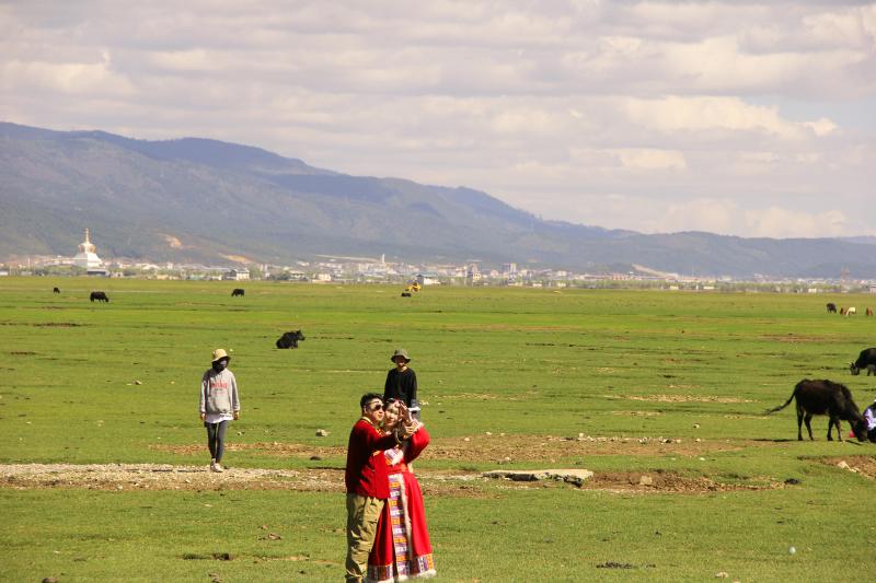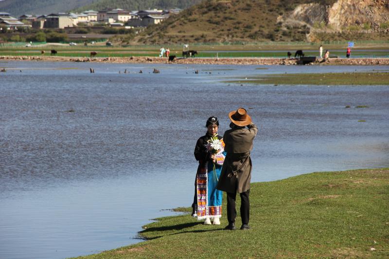伴隨著立夏過后的第一場雨雪,迪慶高原綠意更濃。納帕海湖畔更添一分高原夏日氣息,碧藍的湖水、翠綠的草原和自由行走在草原上的牛羊是高原獨特的風(fēng)景線。深深吸引著來自五湖四海的游人駐足觀賞。雖然“五一”假期已過,但前往納帕海游玩的游客并沒有減少,不少游客表示是特意前往這里感受草原風(fēng)光、拍照留念的。