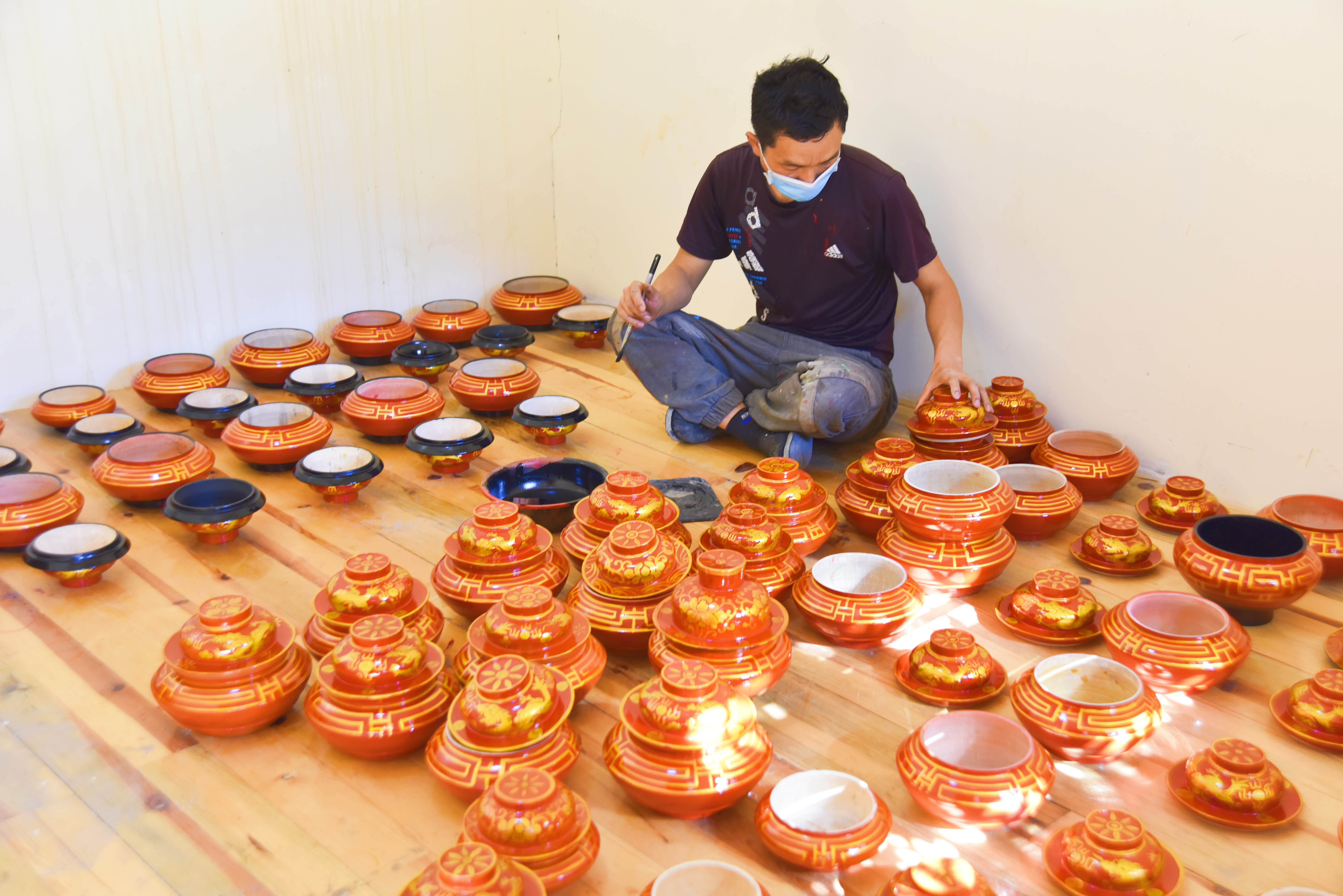 走進(jìn)德欽縣奔子欄鎮(zhèn)益西藏文化產(chǎn)業(yè)有限公司,手工藝人們正有條不紊地加工著藏式木碗。作坊里,有的正在精心進(jìn)行手工打磨,有的一手托碗一手用畫(huà)筆為上好底漆的木碗描上極具藏族特色的紋飾。