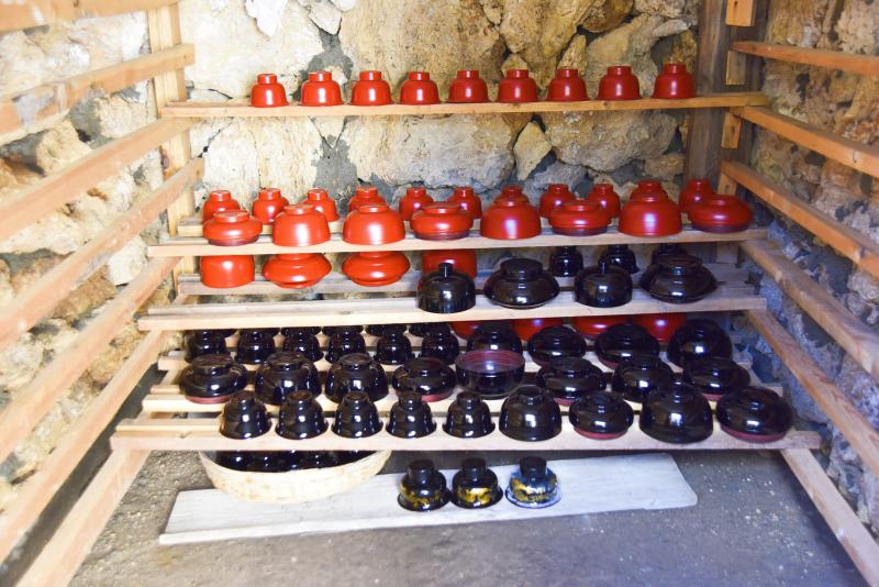 木碗的整個(gè)制作過(guò)程需要20多道工序,其中,上漆時(shí)使用的是天然土漆。刷漆后直接放到專(zhuān)門(mén)的地窖里陰干。