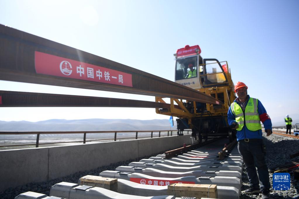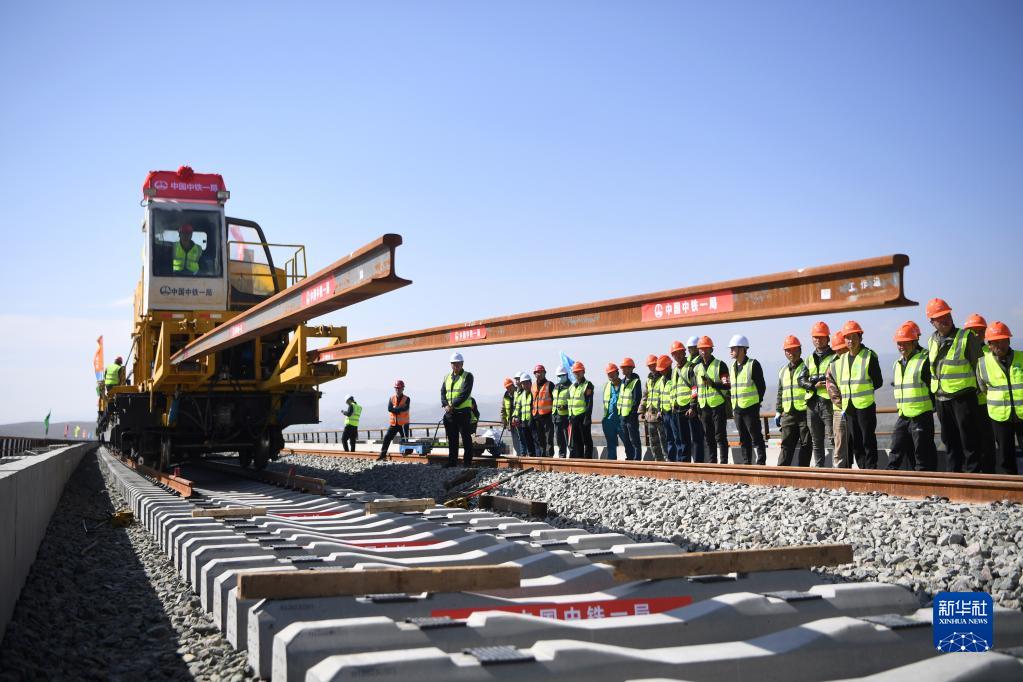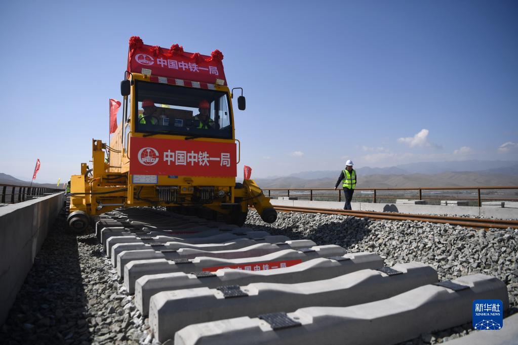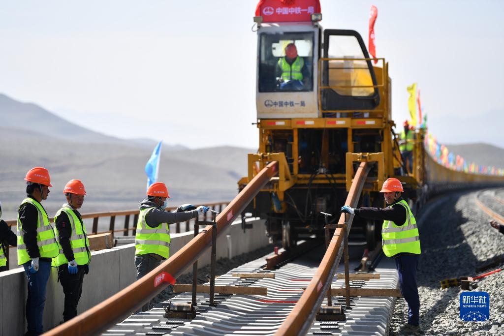 5月26日,在甘肅省武威市天祝藏族自治縣境內(nèi)蘭(蘭州)張(張掖)三四線鐵路鋪軌施工現(xiàn)場,一體式牽引車在中鐵一局施工人員的操作下,將一組500米長的鋼軌精準(zhǔn)鋪設(shè)在道床上,標(biāo)志著由中鐵一局承建的蘭張三四線鐵路蘭州至武威段進(jìn)入全線鋪軌階段。