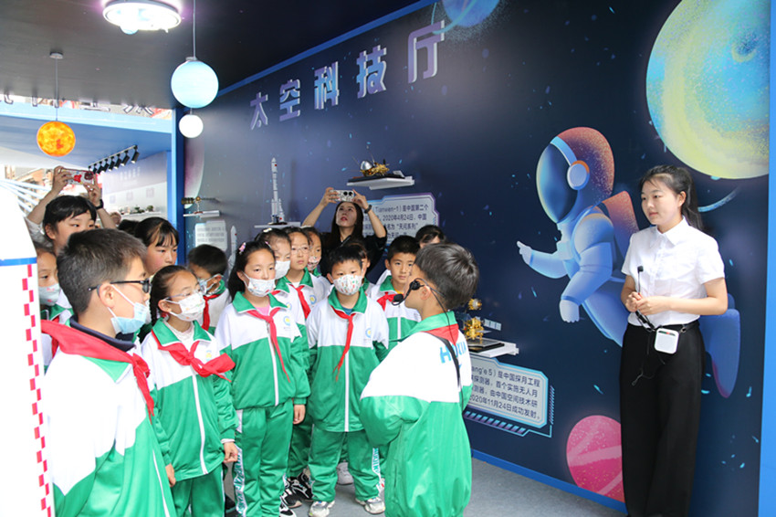 “航天夢是中國夢、華夏夢,神舟十六號載人飛船發(fā)射成功并進入預定軌道。古人仰望星空,幻想上天攬月的夢想,在一代代中國航天人的努力下逐漸變?yōu)榱爽F(xiàn)實。”“紅領(lǐng)巾”講解員劉嘉沐在解說他負責的天空科技廳時,將這一喜訊分享給了在場的同學們?!跋M芙枭裰凼栞d人飛船發(fā)射成功的機會,在科普周活動中普及航天知識,讓更多的學生深入了解航天文化,引導青少年傳承航天精神、點燃航天夢想?!敝菘茀f(xié)負責人告訴記者。