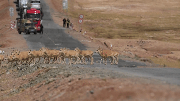 藏羚羊“過(guò)馬路”,車輛請(qǐng)注意!