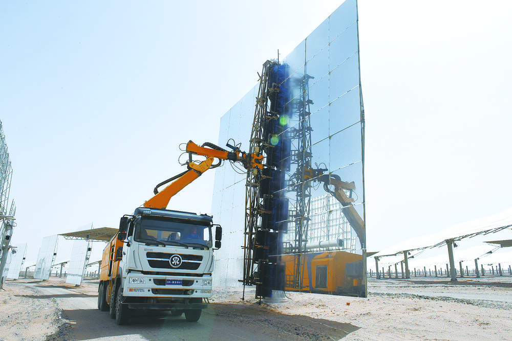 魯能新能源(集團(tuán))有限公司定日鏡清潔維護(hù)中。殷之皓 攝