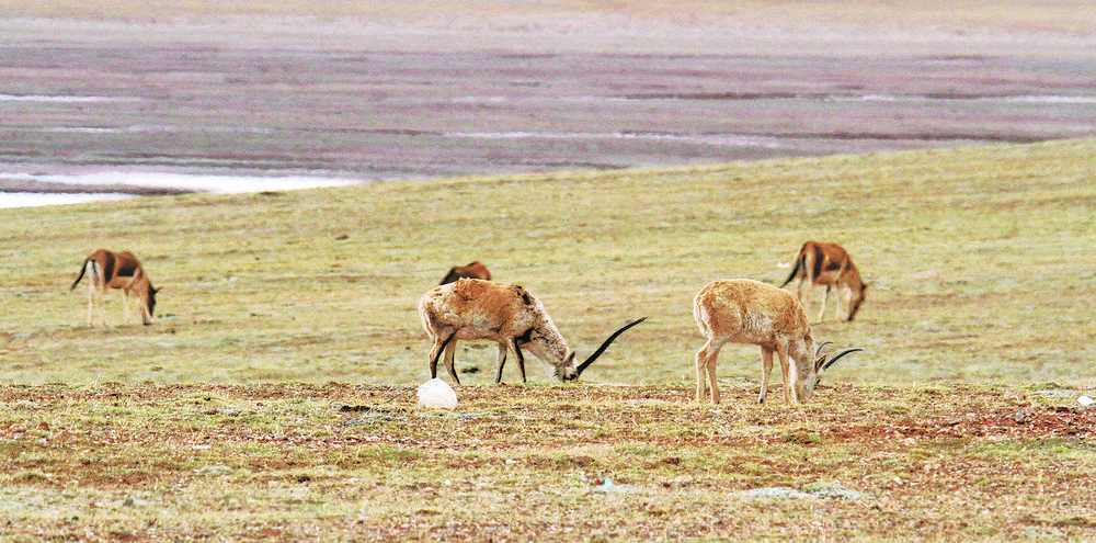 “這幾年,一個(gè)明顯的感覺是雨水多了,天氣熱了,草的長勢比往年要好些。藏野驢和黃羊很常見,鷹也越來越多了。記得小時(shí)候很少見到的野牦牛和棕熊,現(xiàn)在時(shí)不時(shí)會在草場出沒?!贝纬啥嗾f。