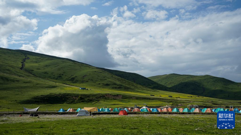 阿壩州紅原縣俄么塘花海景區(qū)內(nèi)的露營營地。新華社記者 尚文意 攝