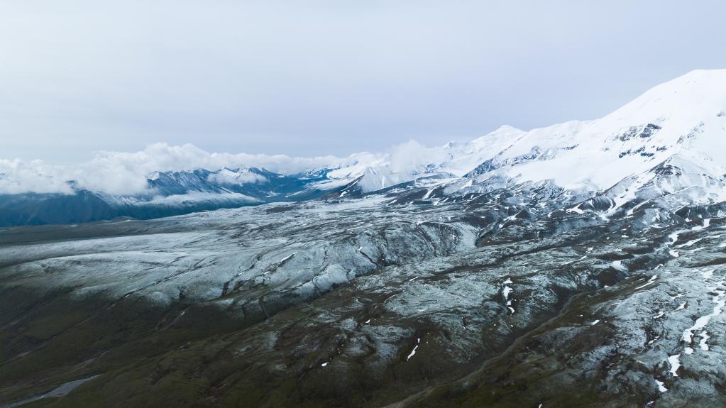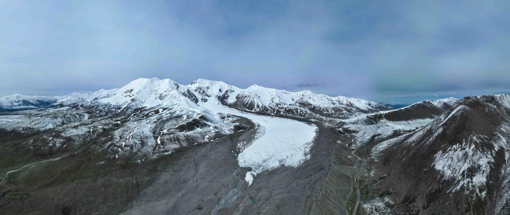 這是6月15日在青海省果洛藏族自治州瑪沁縣境內(nèi)拍攝的阿尼瑪卿雪山(無人機(jī)照片)。新華社記者 張龍 攝