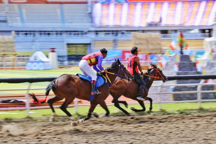 6月24日下午,迪慶·香格里拉2023年端午賽馬節(jié)馬術(shù)比賽項(xiàng)目全部結(jié)束,圓滿落幕。此次馬術(shù)比賽設(shè)有甲、乙、丙組5000米、3000米、1000米速度賽馬,甲、乙、丙組3000米、1000米走馬賽及跑馬射箭、跑馬拾哈達(dá)17個(gè)項(xiàng)目,來自香格里拉市建塘鎮(zhèn)諾西村代表隊(duì)的嘎提七林和來自香格里拉市虎跳峽代表隊(duì)知詩定主一人分別包攬4枚金牌,成為了此次比賽的最大贏家。