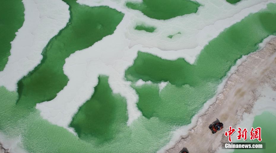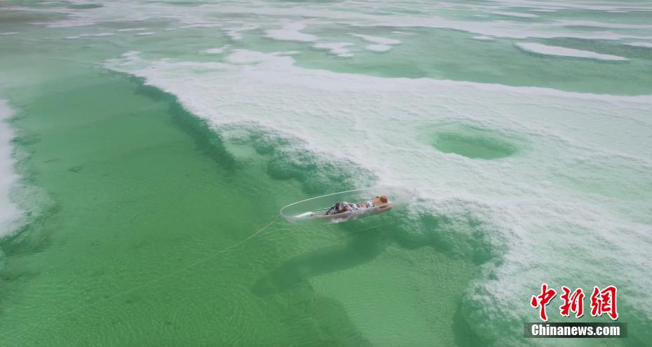 夏日,位于青海海西州茫崖市花土溝鎮(zhèn)的翡翠湖宛如色彩絢麗的油畫被描繪在蒼茫的柴達(dá)木盆地上,淡青、翠綠、深綠色的湖水如碎玉散落在大漠戈壁上,充滿生機(jī)。茫崖翡翠湖南依昆侖山,北靠阿爾金山,總面積約26平方公里,屬于硫酸鎂亞型鹽湖,由于所含礦物質(zhì)濃度的不同,致使湖面顏色深淺不一。18日,由中新社青海分社,青海省海西州茫崖市委、茫崖市人民政府共同主辦的“赴蒼茫之崖品人間煙火”青?!っQ?023美食大會在茫崖市正式啟動。近日,活動團(tuán)隊來到茫崖翡翠湖進(jìn)行拍攝采風(fēng)。