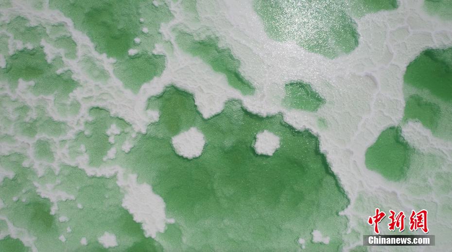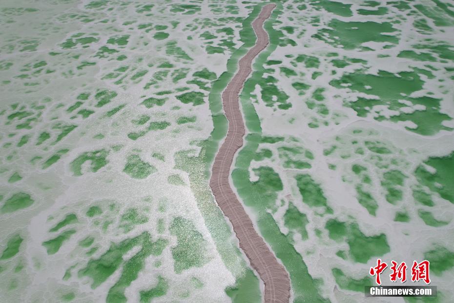 8月15日,航拍地處青海省海西州茫崖市的翡翠湖。翡翠湖是一個人工鹽湖,田字狀的湖水呈現(xiàn)出青翠的色彩。[詳細(xì)]