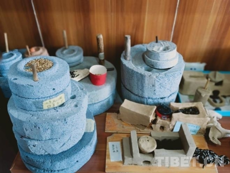 圖為學(xué)生和家長(zhǎng)一起手工制作的糌粑磨盤