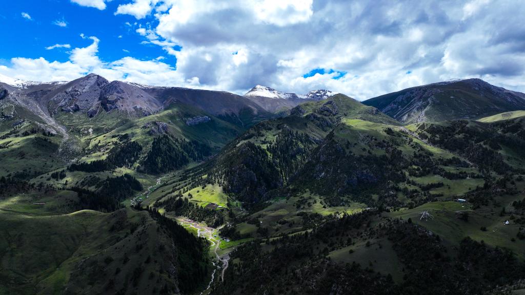這是7月3日拍攝的門源縣境內(nèi)風(fēng)光(無人機(jī)照片)。新華社記者 張宏祥 攝