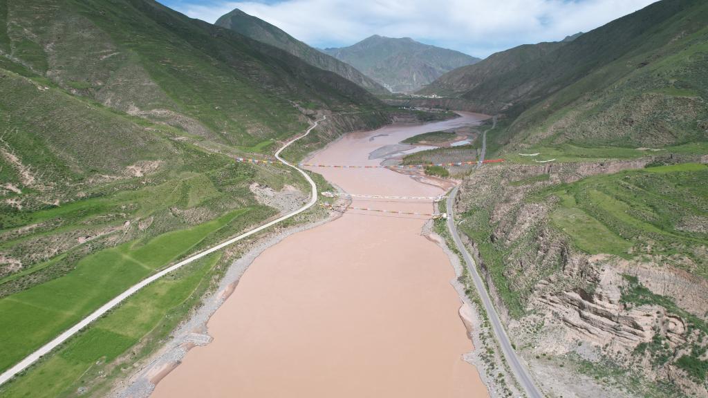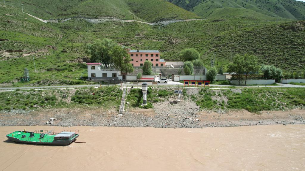 這是7月22日拍攝的通天河直門達(dá)水文站(無人機照片)。新華社記者 劉詩平 攝