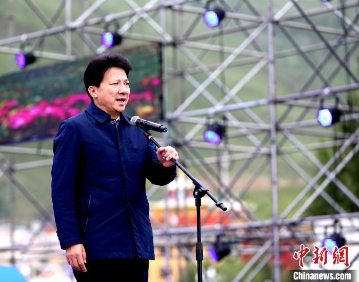 圖為中共玉樹(shù)州委書記蔡成勇致辭。薛蒂 攝
