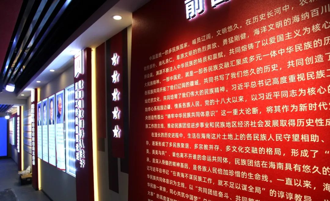 體驗(yàn)館由“淵源流長(zhǎng)、共同書(shū)寫(xiě)海南悠久歷史”“命運(yùn)與共、共繪中華民族共同體底色”“團(tuán)結(jié)奮斗、共建中華民族共同體”“人杰地靈、共同孕育圣潔海南”“繼往開(kāi)來(lái),共圓偉大復(fù)興中國(guó)夢(mèng)”五個(gè)篇章十八個(gè)單元組成,展陳布局完整、內(nèi)容新穎、特色鮮明,是展示海南悠久歷史的“隧道”、改革發(fā)展成果的“窗口”、參觀學(xué)習(xí)交流的“平臺(tái)”、各民族交往交流交融的“陣地”。