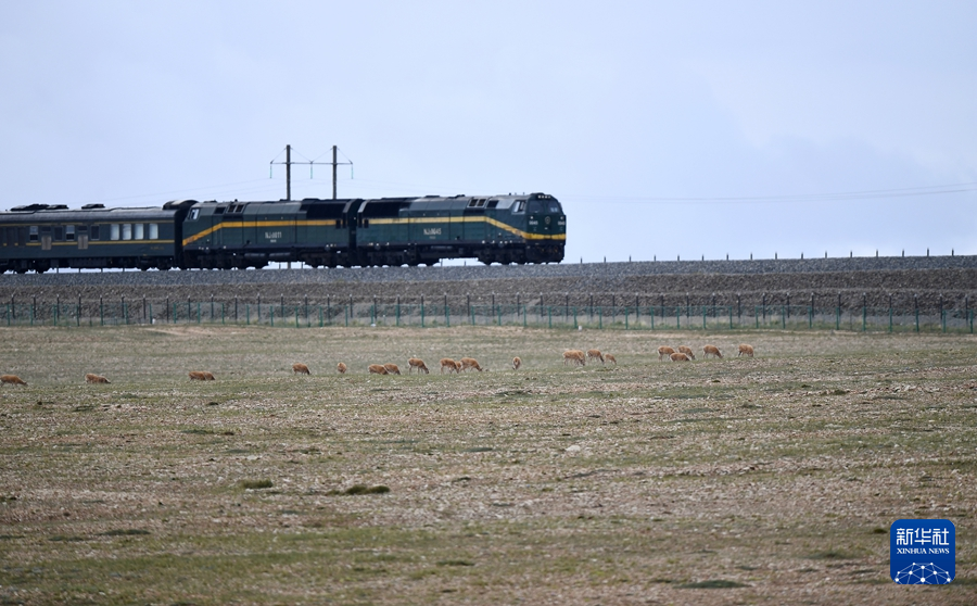 7月28日,一群藏羚羊在青藏鐵路沿線活動。新華社記者 張宏祥 攝