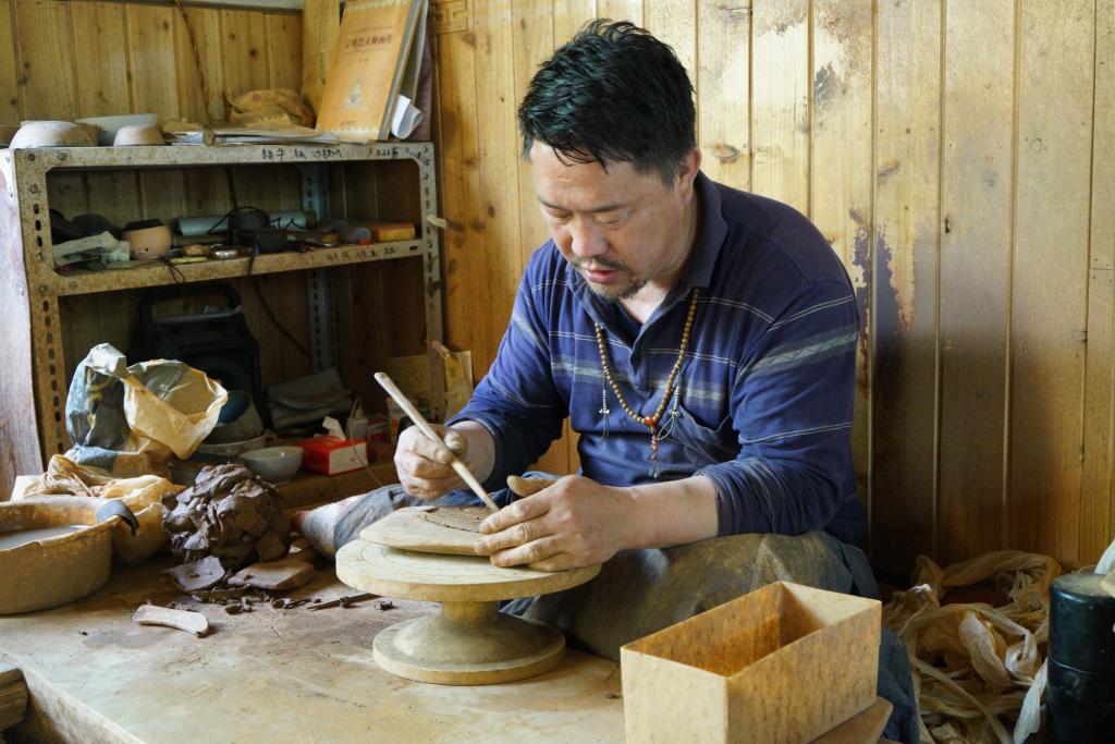 魯茸恩主是這間體驗(yàn)館的負(fù)責(zé)人。作為黑陶燒制技藝傳承人,他經(jīng)常為游客講解黑陶制作之道。在父親的熏陶下,他13歲就開(kāi)始學(xué)習(xí)黑陶燒制。這條非遺傳承路,到現(xiàn)在已經(jīng)走了42年?!拔蚁矚g做黑陶,這輩子就認(rèn)準(zhǔn)了這件事?!彼f(shuō)。