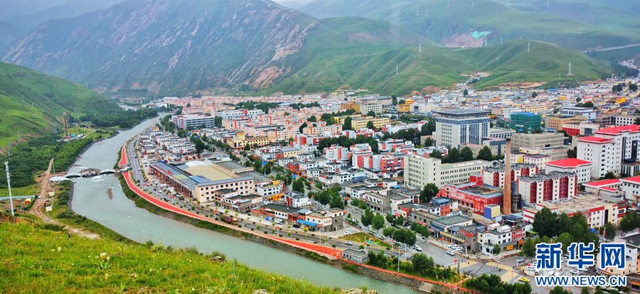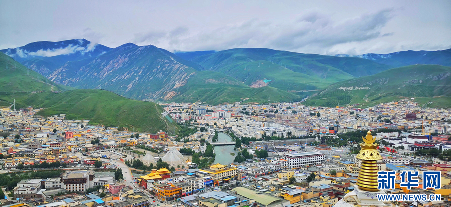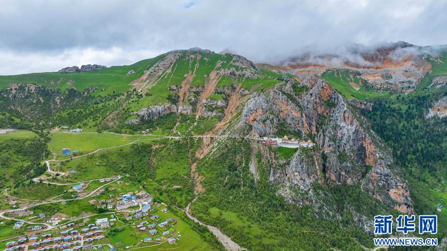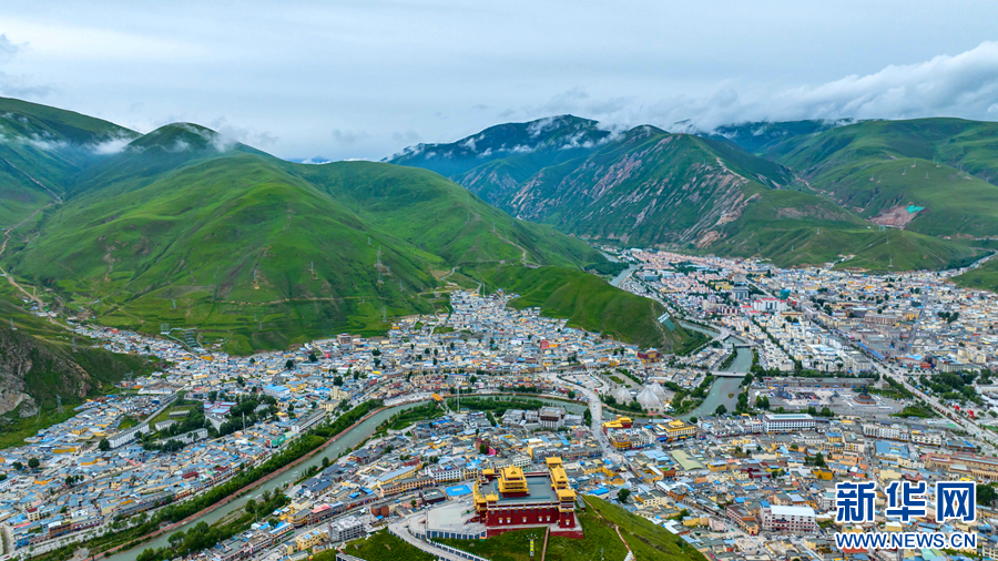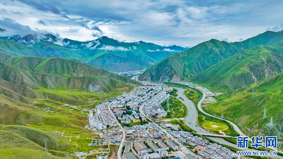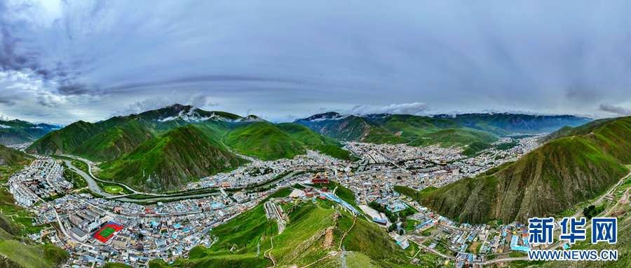 圖為青海省玉樹藏族自治州玉樹市的夏日風(fēng)光(無人機(jī)全景照片)。新華網(wǎng) 宋忠勇 攝