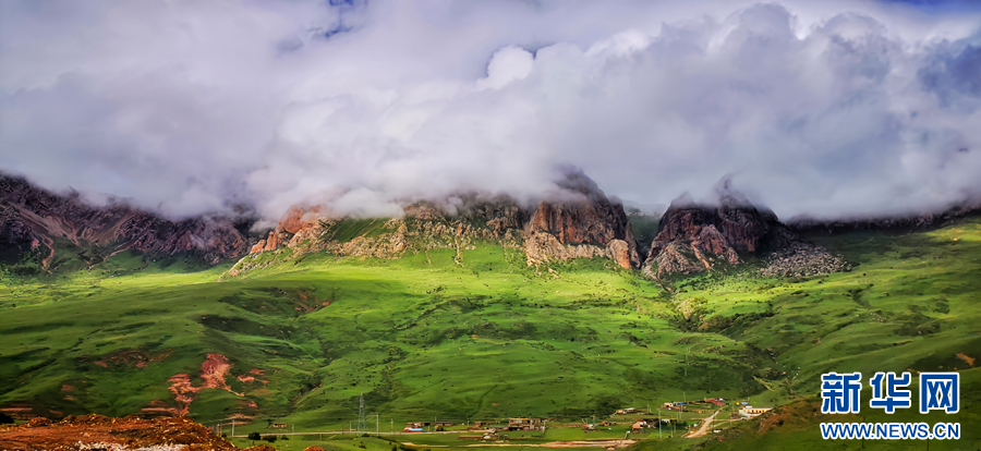 時(shí)值盛夏,青海省玉樹藏族自治州景色怡人,群山和草原在藍(lán)天白云的映襯下構(gòu)成壯美的畫卷。