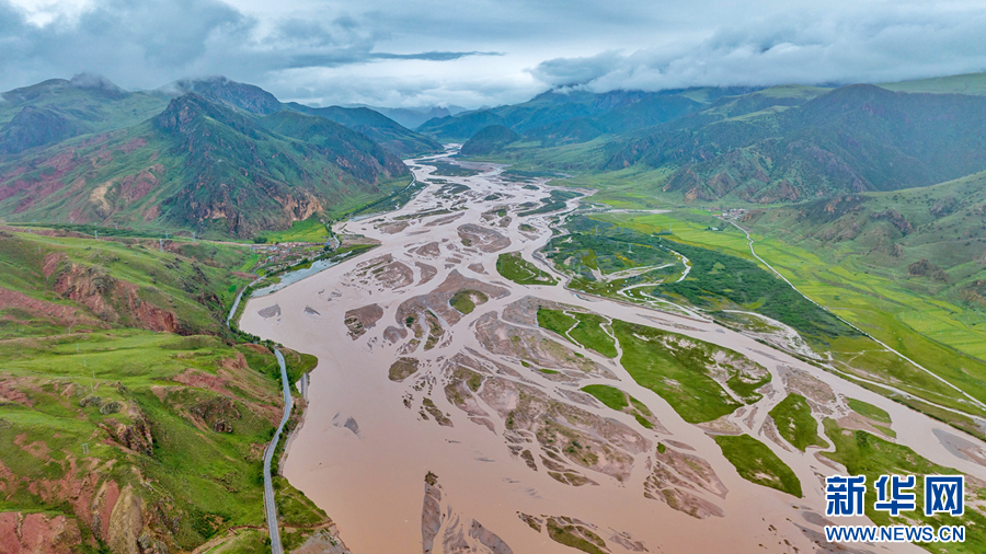 圖為在青海省玉樹藏族自治州囊謙縣境內(nèi)拍攝的夏日風(fēng)光(無人機(jī)照片)。新華網(wǎng) 宋忠勇 攝