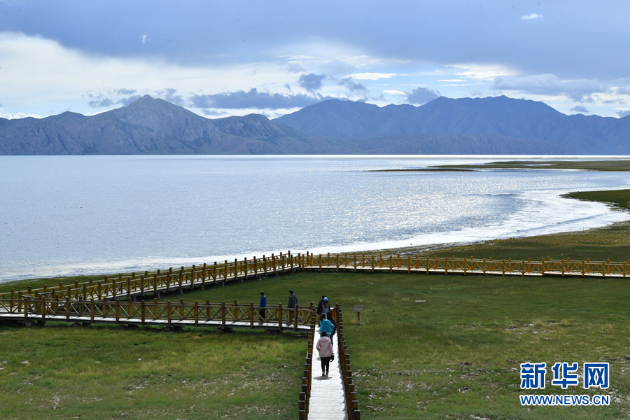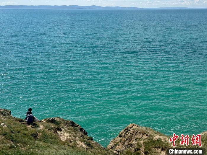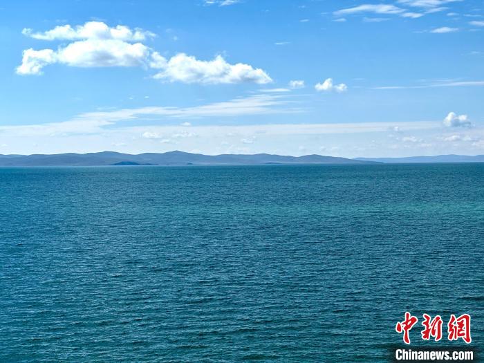 8月1日,記者拍攝到湛藍(lán)的鄂陵湖宛如藍(lán)寶石鑲嵌在群山之中,煙波浩渺、波瀾壯闊。