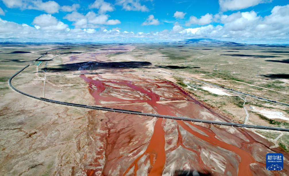 記者看到,在沱沱河與當(dāng)曲匯合處的囊極巴隴,匯合后河流水量增大,辮狀河道寬度超過(guò)3千米。青藏鐵路楚瑪爾河大橋之下的楚瑪爾河,暗紅色的河水宛如大地的血管系統(tǒng),流淌在寬闊的辮狀河道里。