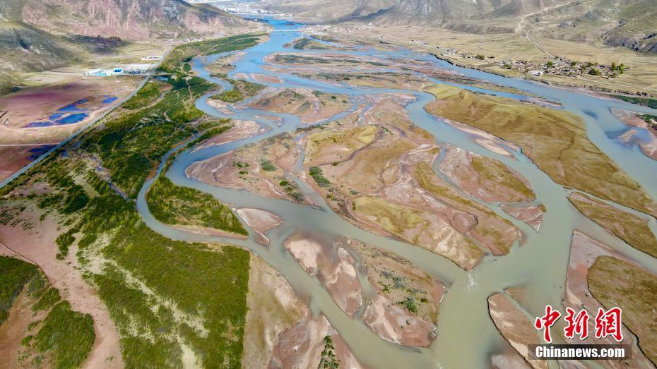 8月22日,航拍青海省玉樹藏族自治州囊謙縣境內(nèi)的扎曲河網(wǎng)狀水系。扎曲河是瀾滄江上游主要干流之一,縱橫交錯(cuò)的河水在群山中蜿蜒流淌,形成獨(dú)特的高原景觀。