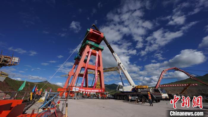 圖為瑪爾擋水電站首臺(tái)壩頂門機(jī)順利完成吊裝。趙成悅 攝